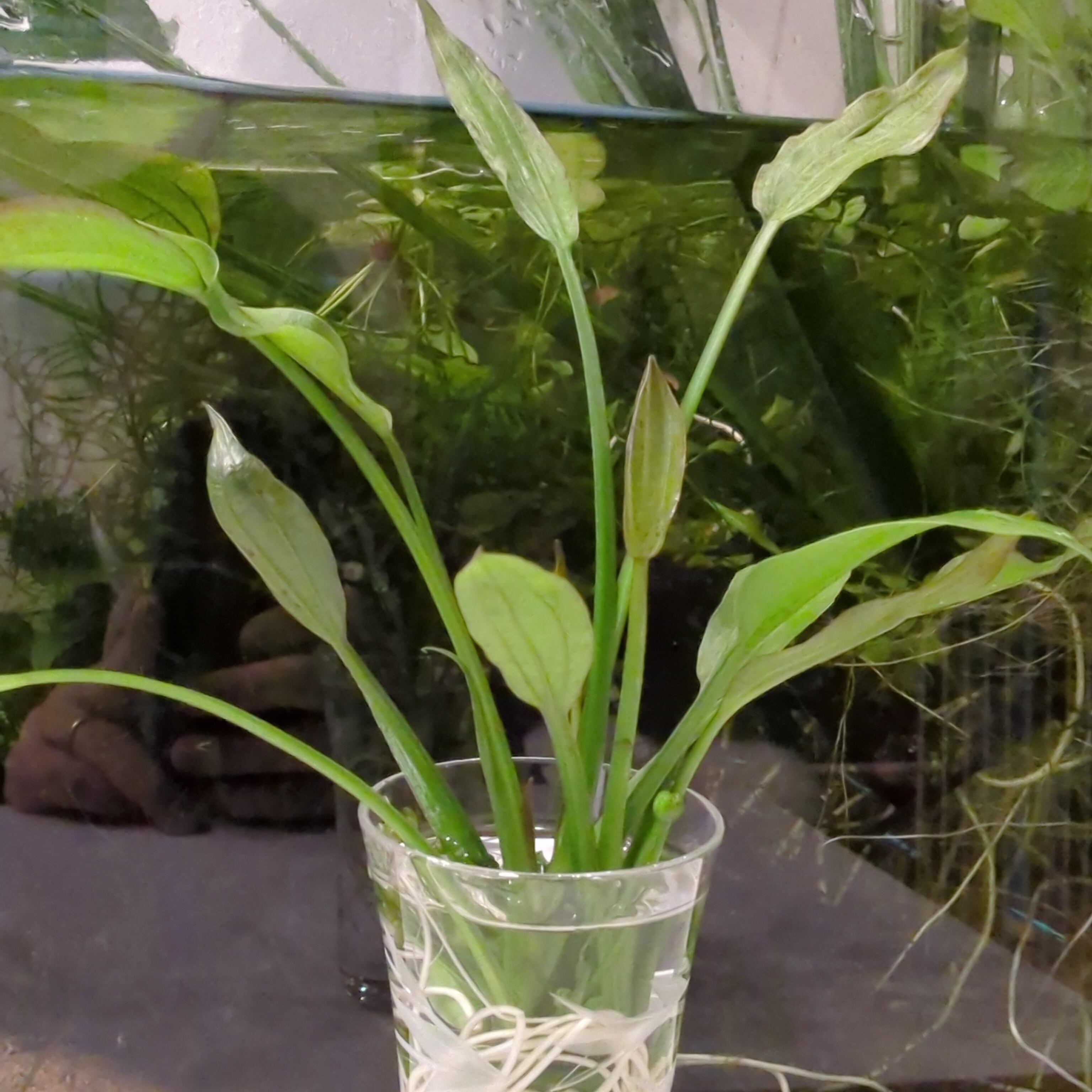 - **大型**の水草で、特に葉が長く成長するため、大型水槽や屋外の池での利用に適しています。水中では高さが50〜100センチメートルほどに成長することがあります。
