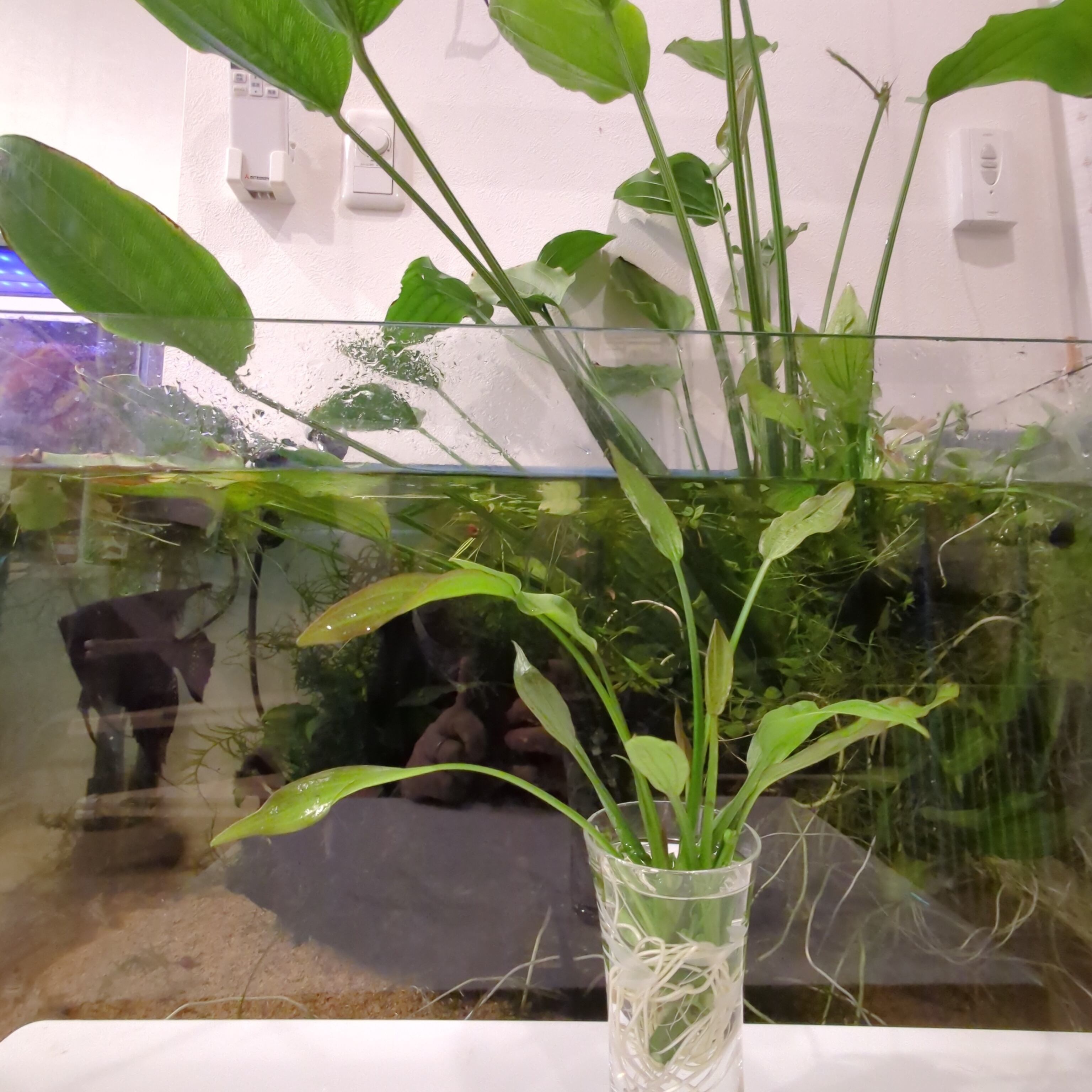 - 成長が早いため、定期的なトリミングが必要です。葉が大きく広がるため、他の水草や水槽内の装飾を覆わないように注意する必要があります。