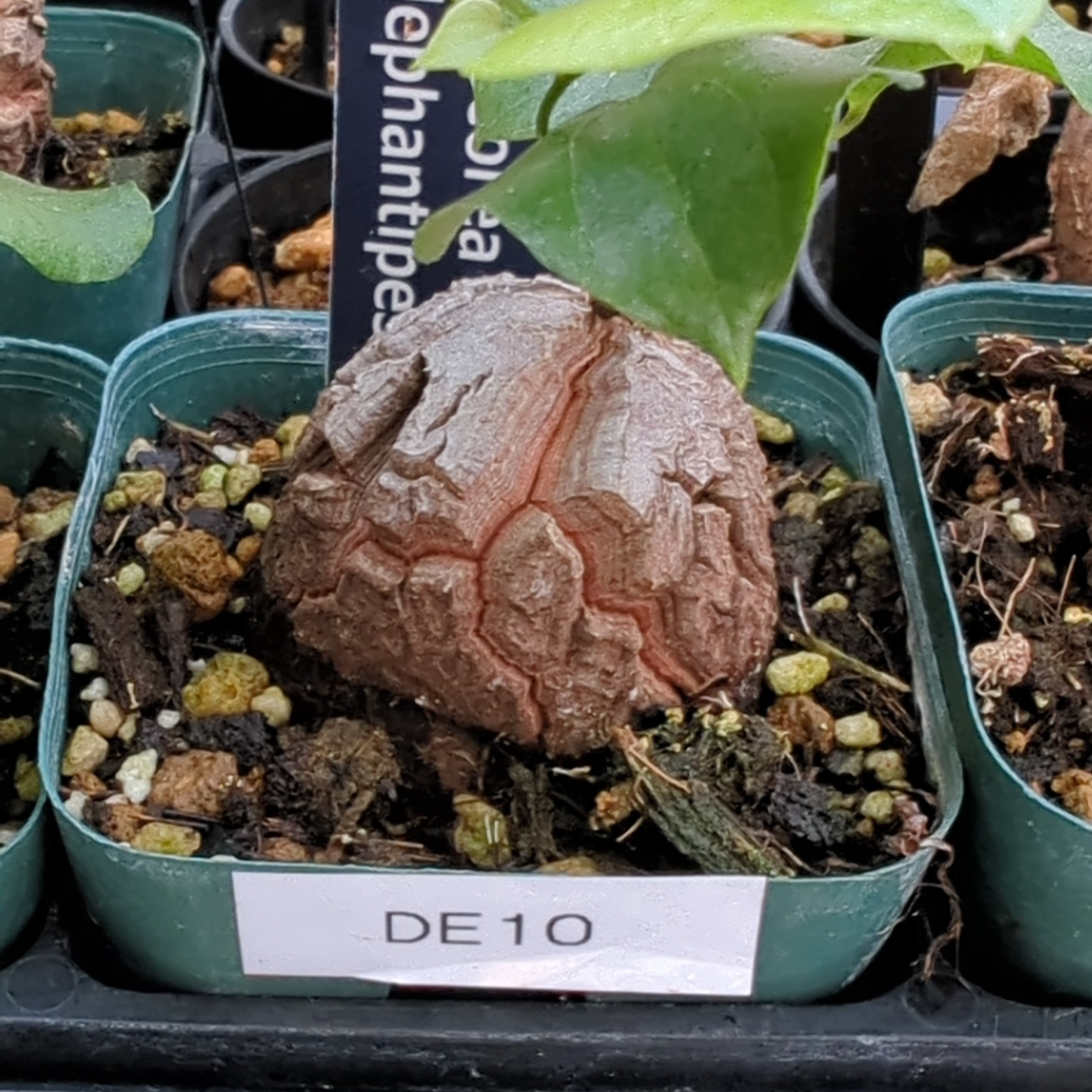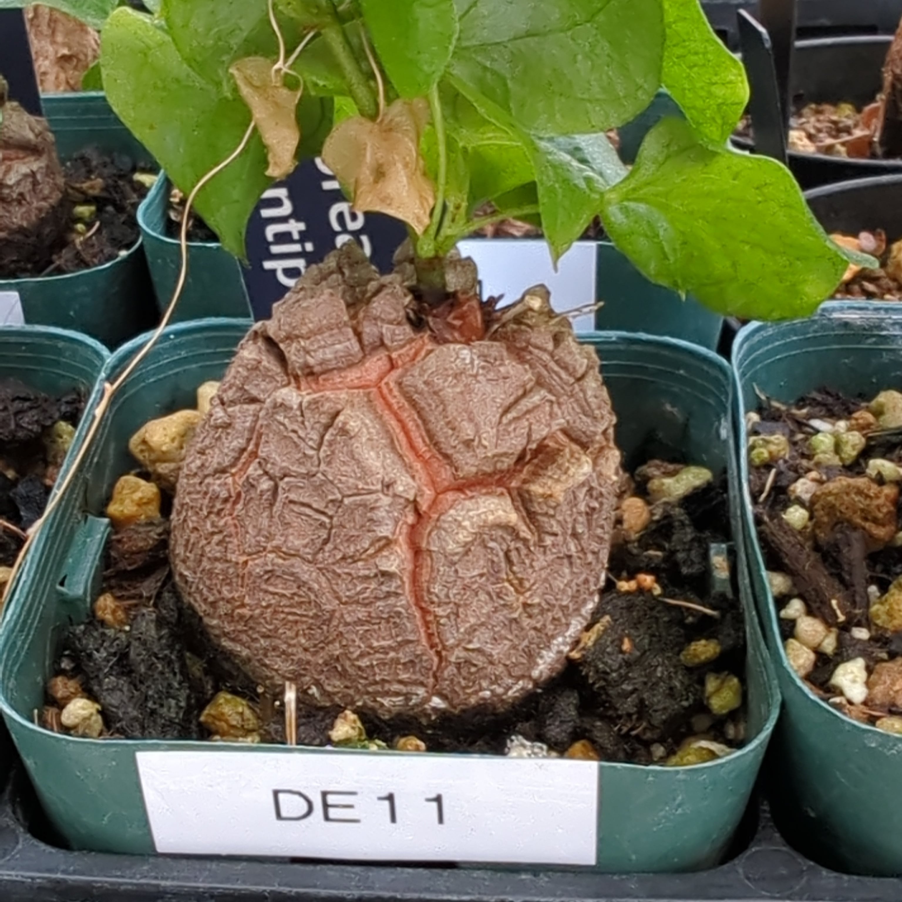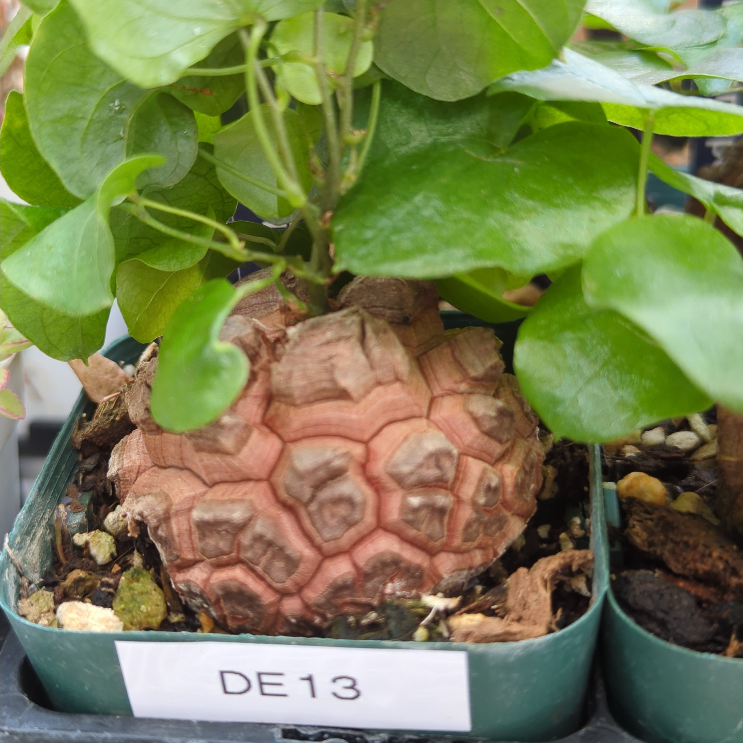 樹皮のような塊根が成長するにつれて亀甲模様を形成します。