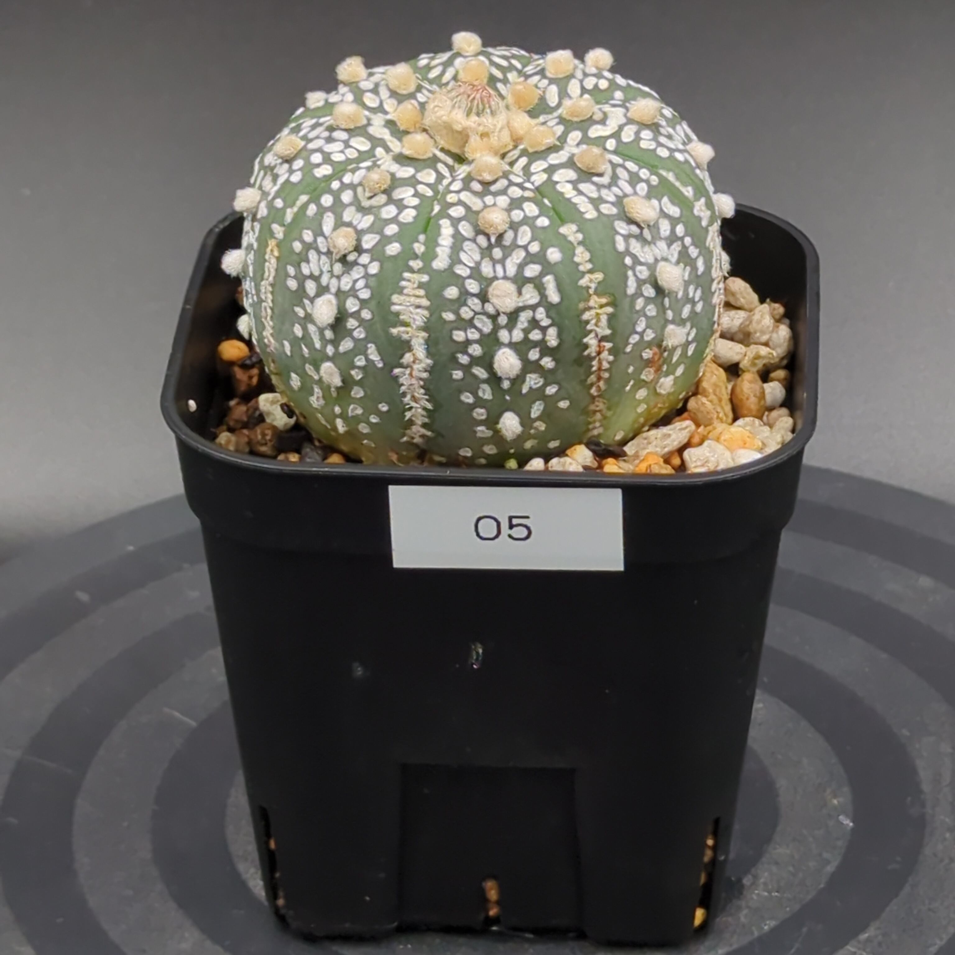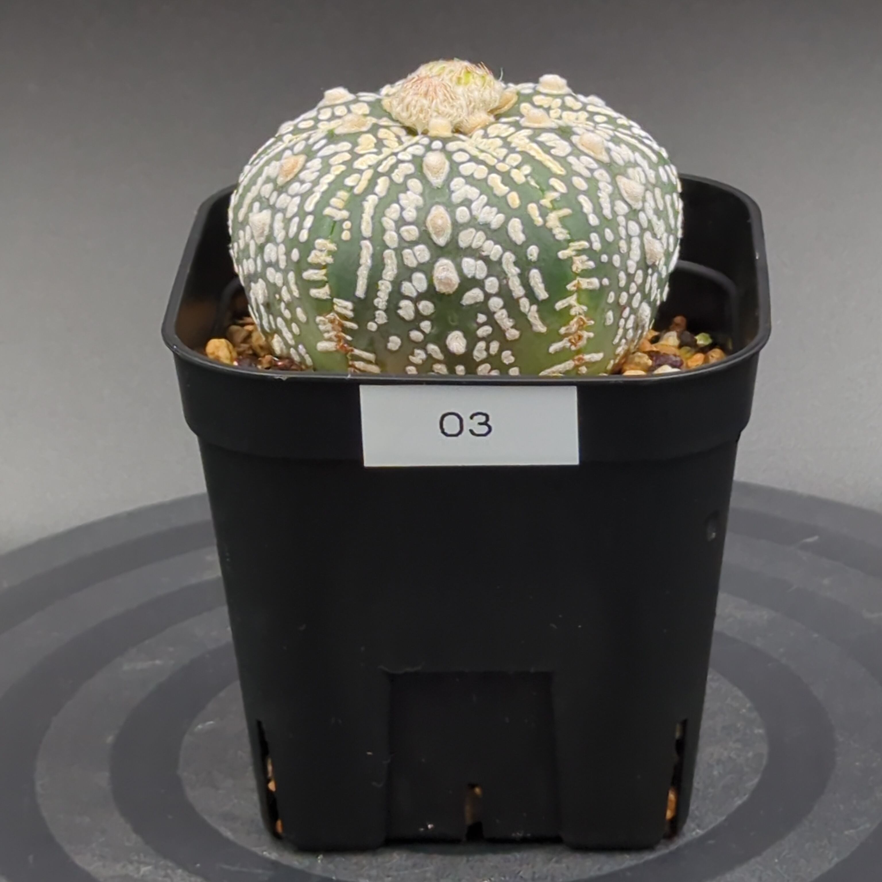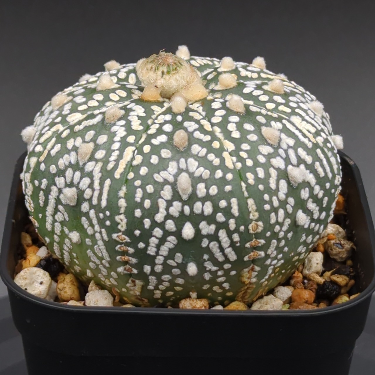 大疣瑠璃兜とスーパー兜の交配種です。瑠璃兜特有の美しい模様と、スーパー兜の大きく盛り上がった疣が特徴的な、非常に魅力的なサボテンです。一つとして同じ模様のものはなく、個性的な株をお探しの方におすすめです。コレクションとしても価値が高く、その独特のフォルムはインテリアとしても存在感を放ちます。