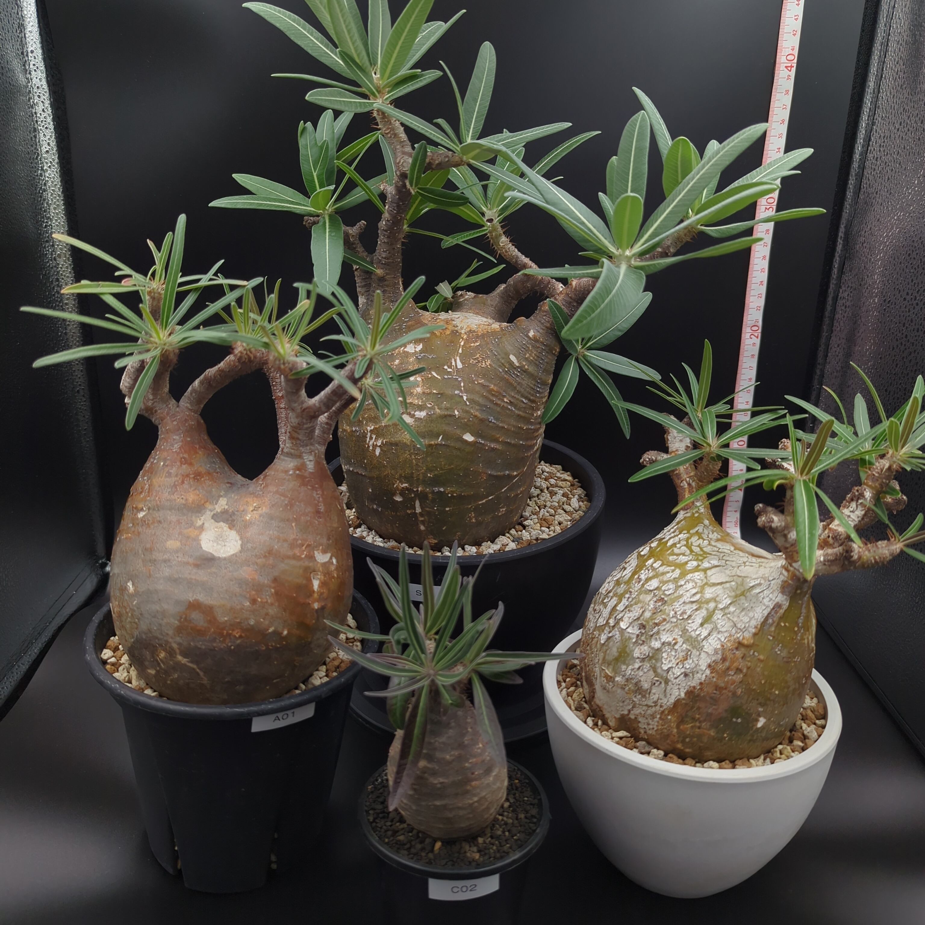 ・特徴:球体に近く育つ塊根(コーデックス)と、その頂部から放射状に葉を展開する姿が特徴的な人気種です。株元には細い棘があります。