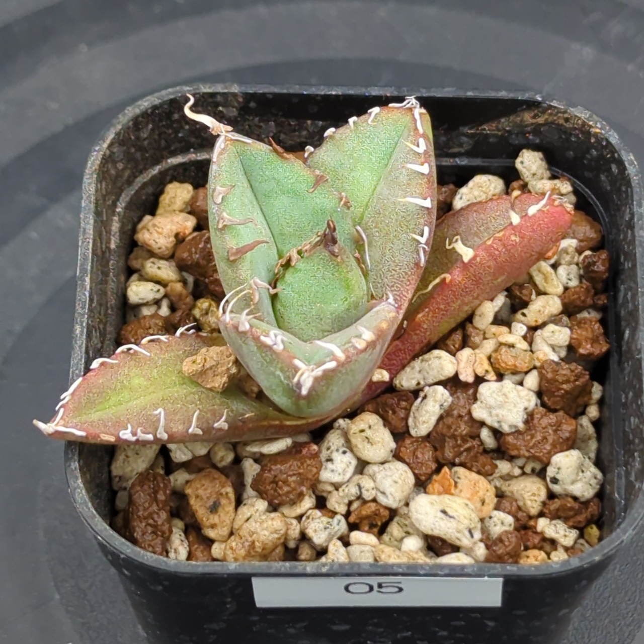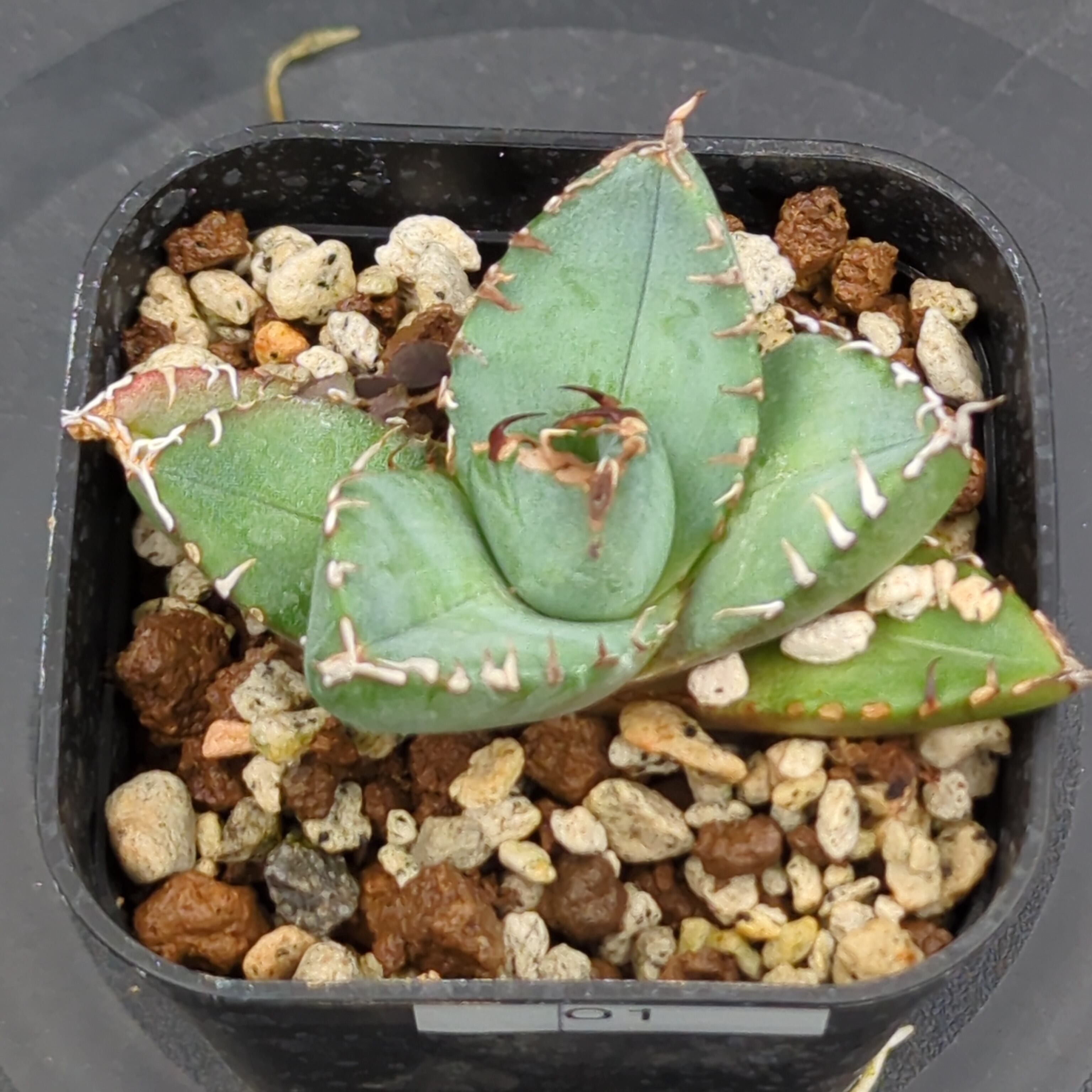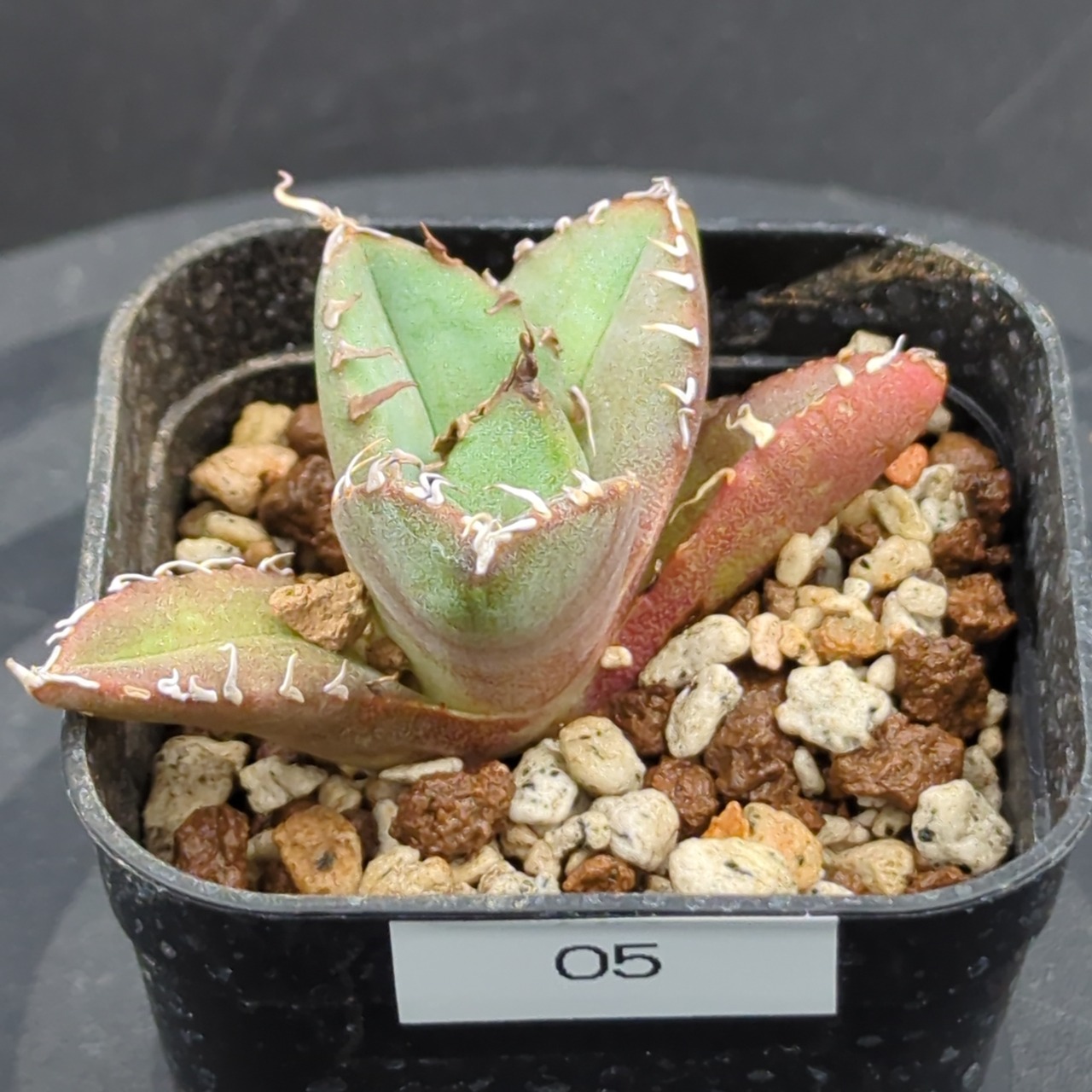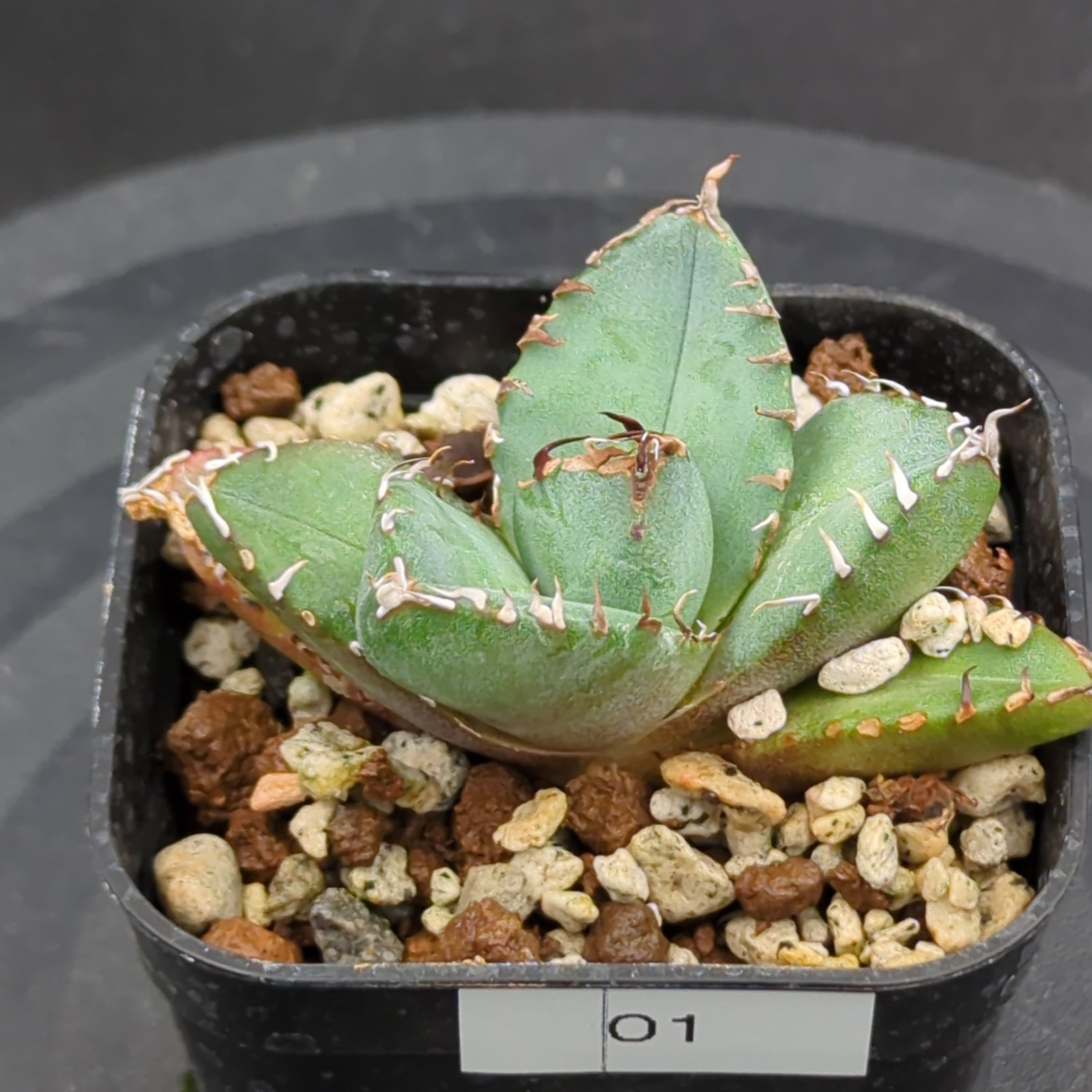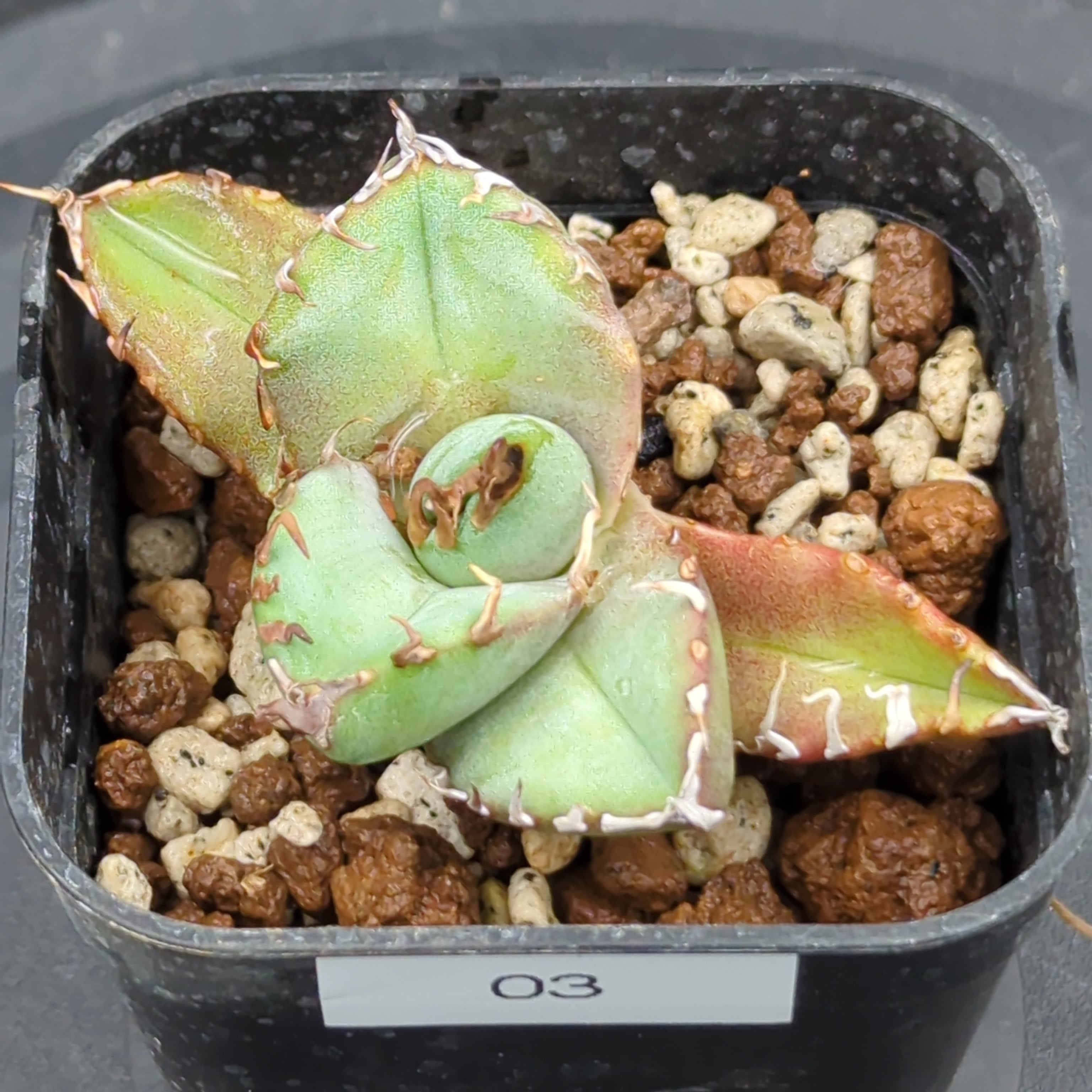 希少価値の高いアガベの中でも、特に人気の高い「チタノタ 魔丸陽炎」の子株です。これから大きく成長していく過程をお楽しみいただけます。