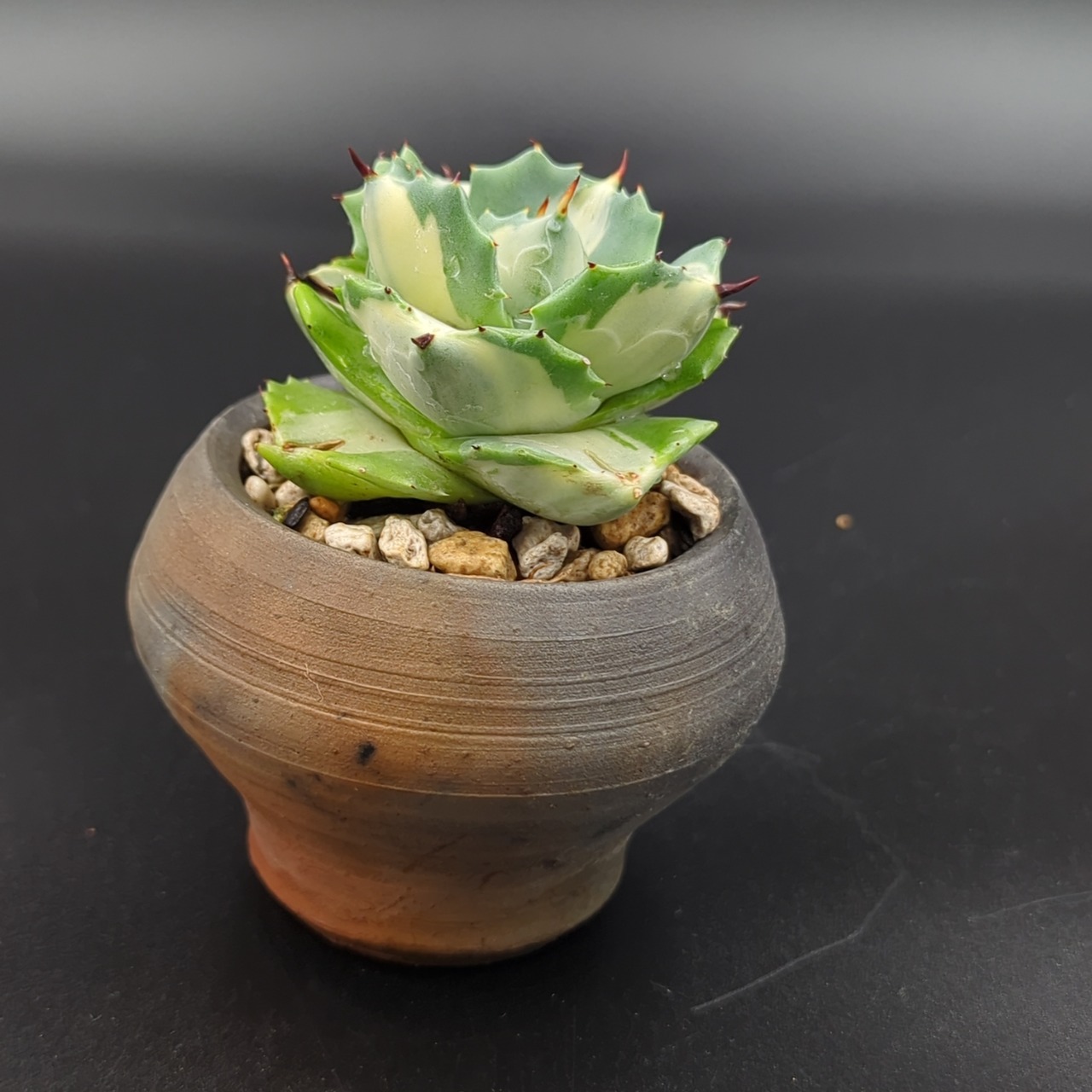 アガベ ポタトラム '王妃雷神錦' 作家鉢 "噐infecto." 植え込み株 一点物