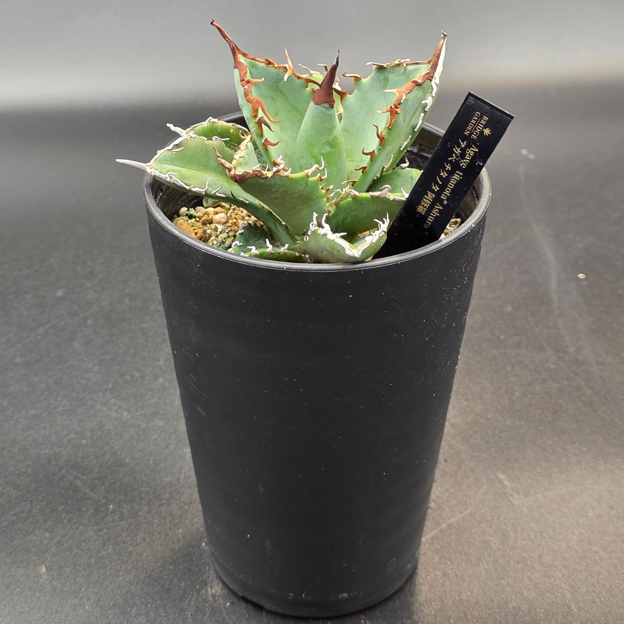 コンパクトながらも圧倒的な迫力があり、コレクションの中でも主役級の逸品となるでしょう。成長はゆっくりですが、その一挙手一投足から目が離せない、育てる喜びを存分に味わえるアガベです。