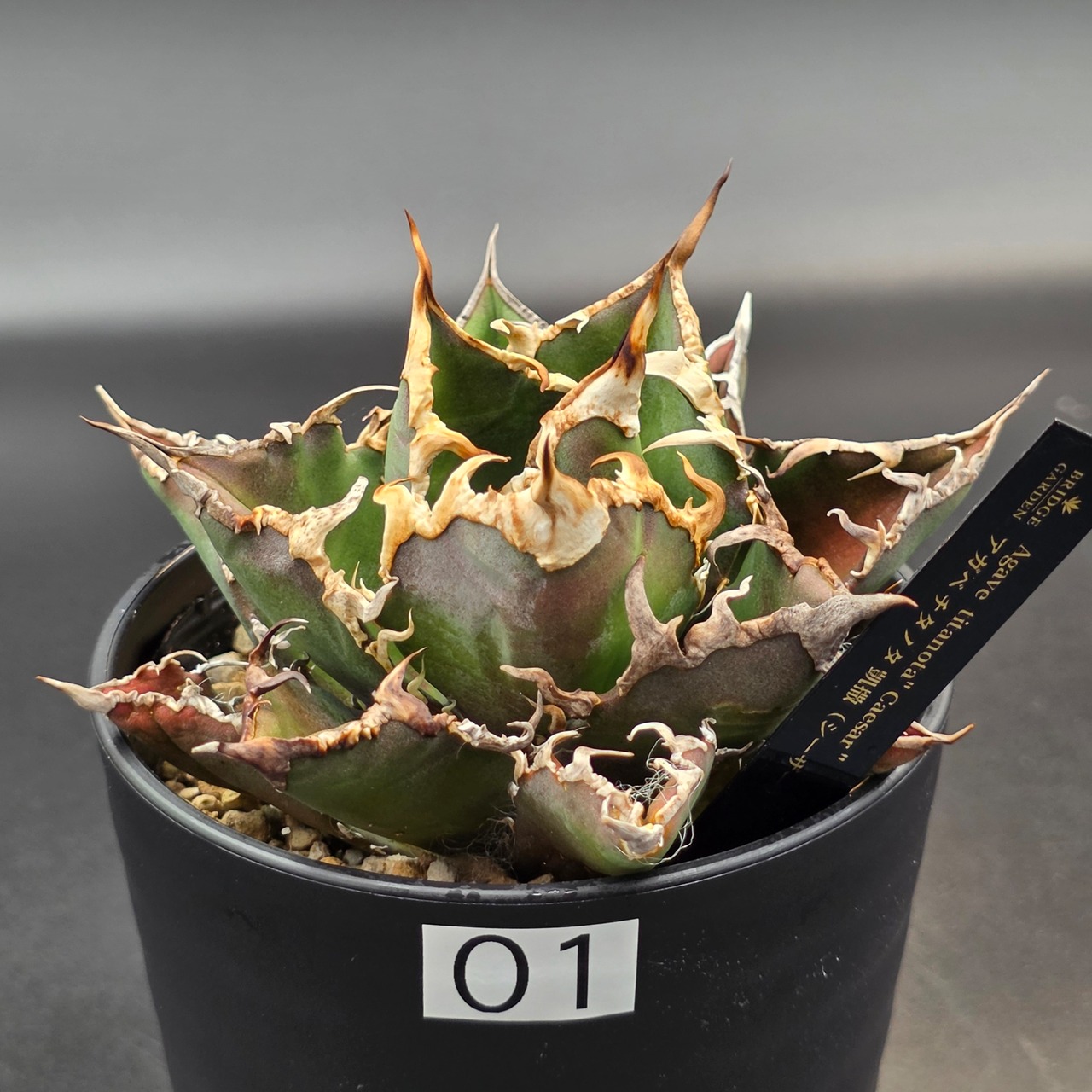 その名は「皇帝」。アガベ・チタノタの中でも最高峰に君臨し、世界中のコレクターが追い求める至高の品種、「シーザー」。圧倒的な存在感と威厳に満ちたその姿は、まさに植物の王と呼ぶにふさわしい風格を備えています。