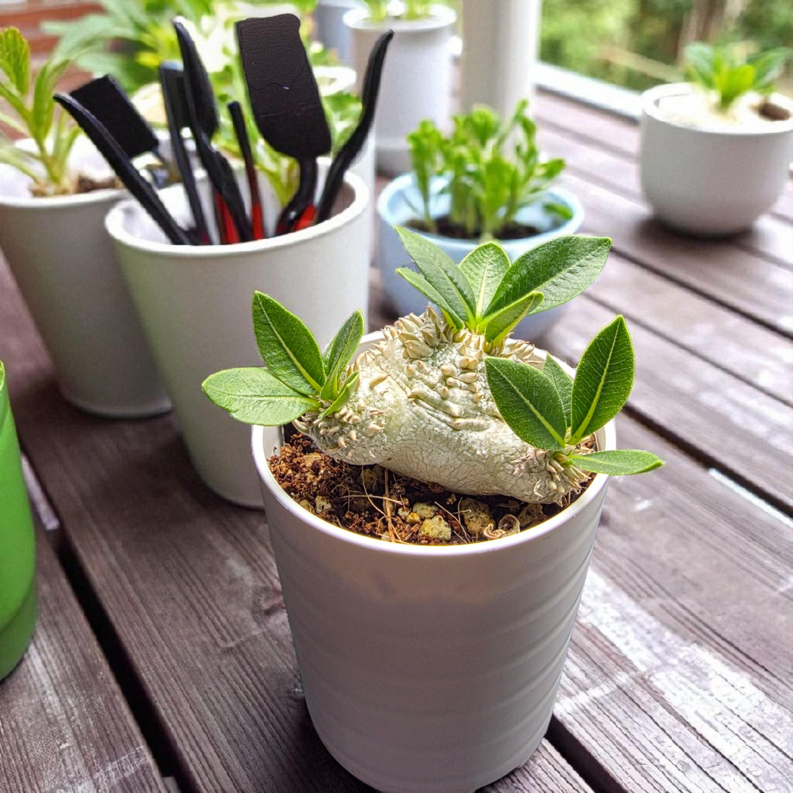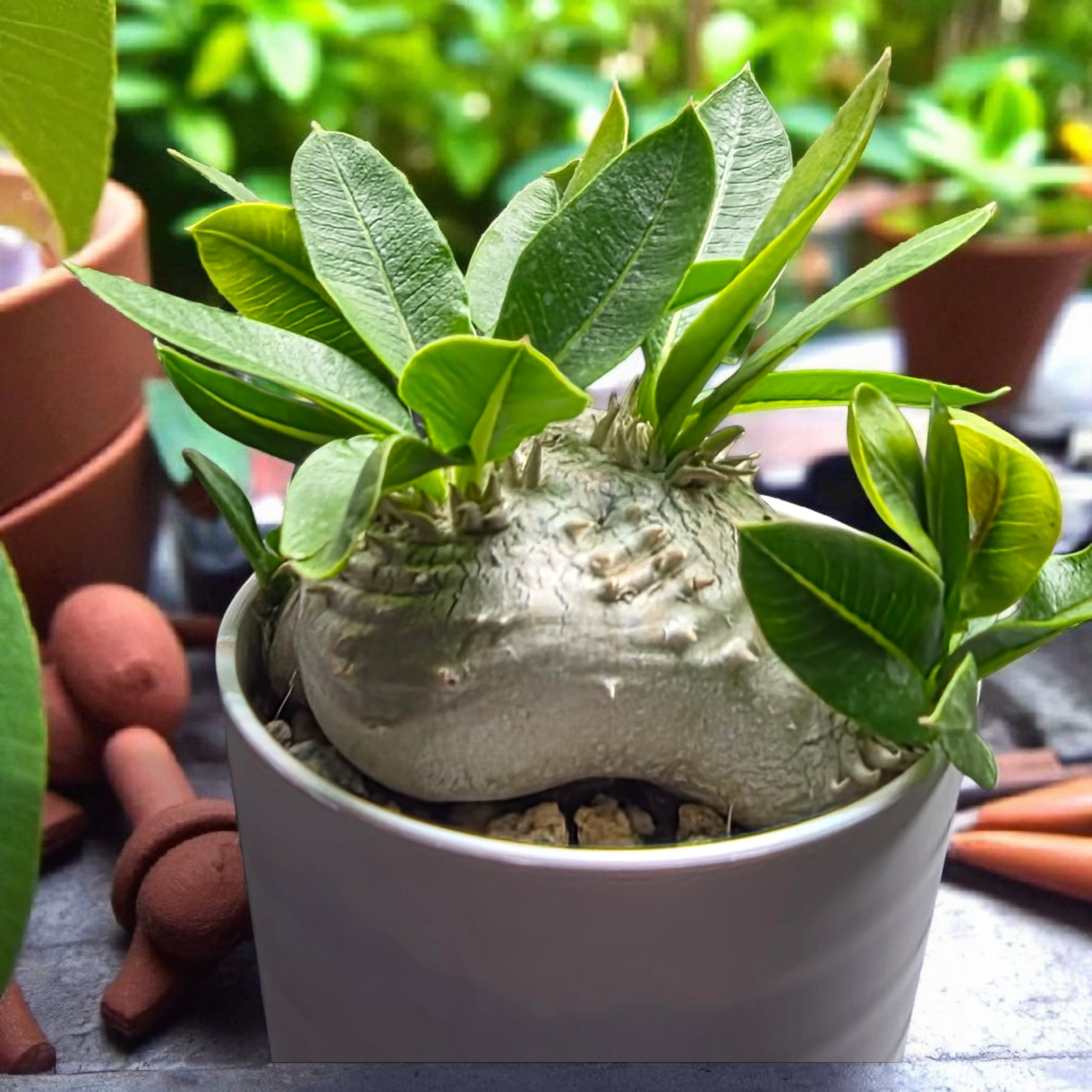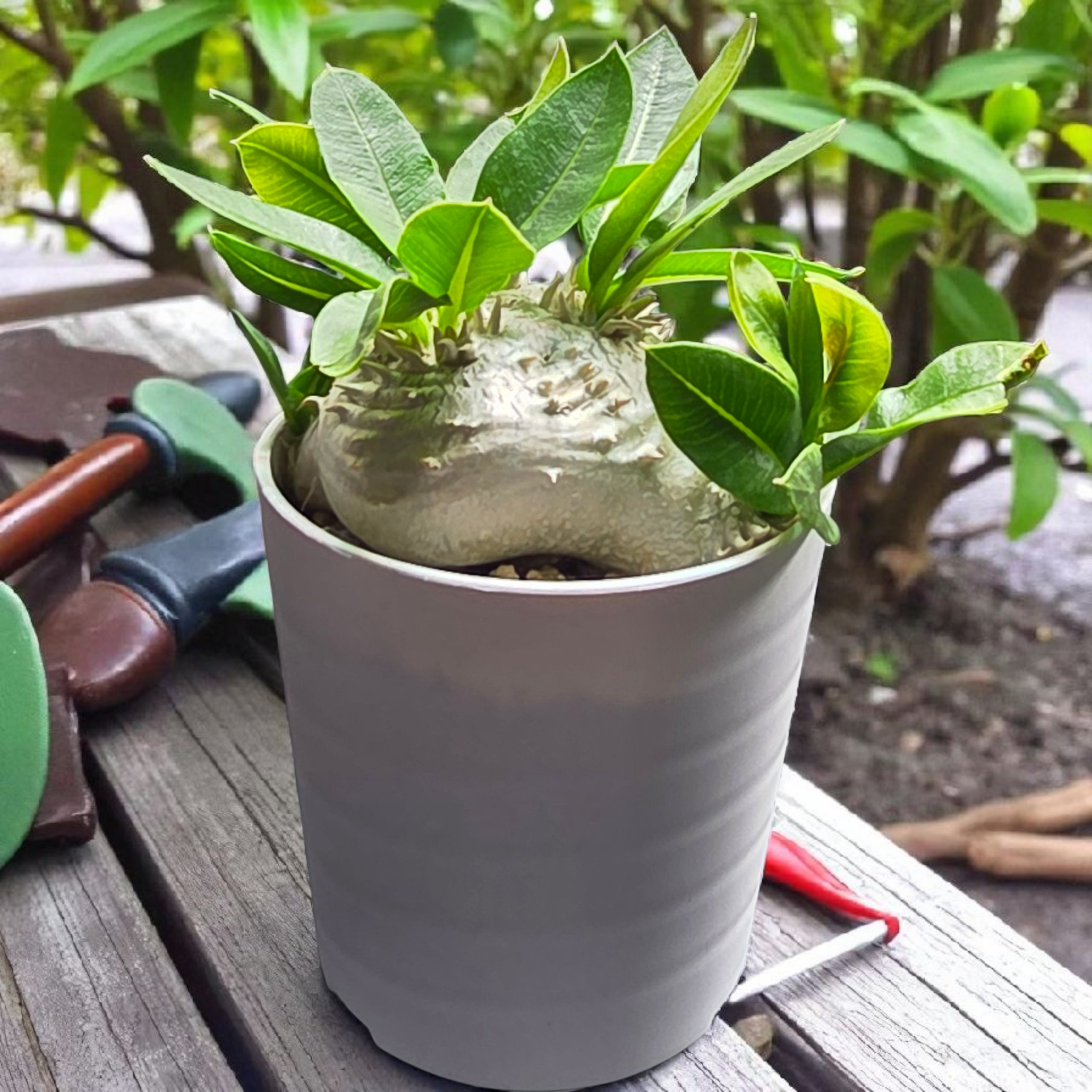マダガスカルの厳しい環境を生き抜くために進化したその姿は、まさに自然が作り出したアート。成長は非常にゆっくりで、長い年月をかけて唯一無二の形に育っていきます。春から夏にかけては、株のサイズに見合わないほどの、大きく鮮やかな黄色の花を咲かせ、見る人を楽しませてくれます。