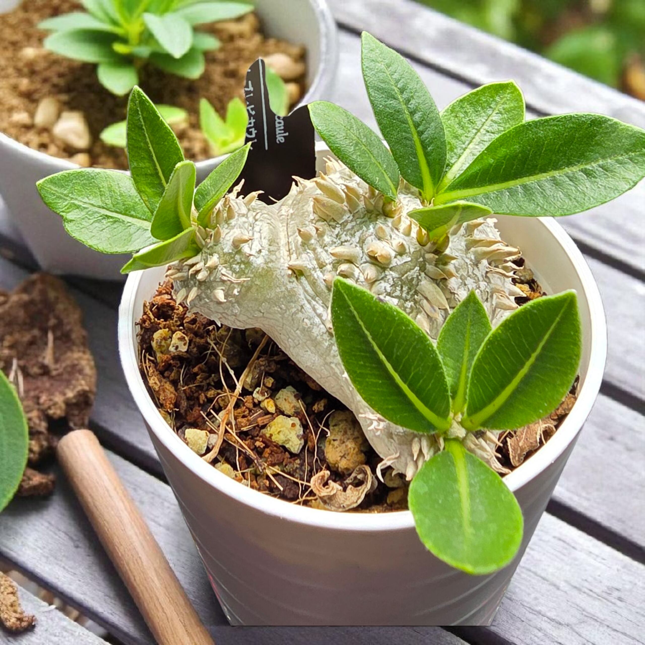 こちらは、品質に定評のある著名ナーセリー「Plants by THE CORE」様が丹精込めて育てられた、健康で形の整った優良株。岩のようにゴツゴツとした肌と、そこからちょこんと生える瑞々しい緑の葉のコントラストがたまりません。